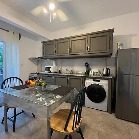 Il Cozy Ground-Floor At Villa Camille Near The Beach comprende un angolo cottura dove gli ospiti possono cucinare e gustare pasti fatti in casa.